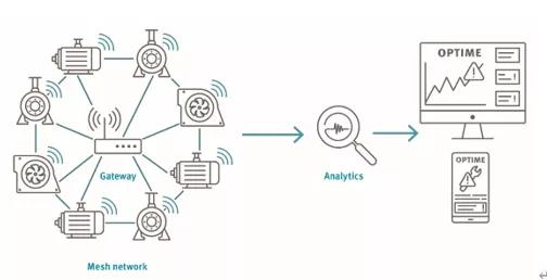 OPTIME可以在沒有任何狀態(tài)監(jiān)測專業(yè)知識(shí)的情況下安裝和執(zhí)行初始操作,并且可以在一天的時(shí)間內(nèi)輕松設(shè)置數(shù)百個(gè)測量點(diǎn)。振動(dòng)傳感器通過螺釘或膠粘劑連接到受監(jiān)測的資產(chǎn)設(shè)備,并通過隨附的應(yīng)用程序激活,該應(yīng)用程序通過近場通信(NFC)與它們連接。所有已安裝的傳感器相互之間和網(wǎng)關(guān)進(jìn)行自主通信,從而形成了專用網(wǎng)狀網(wǎng)絡(luò),該網(wǎng)狀網(wǎng)絡(luò)是當(dāng)今工業(yè)界使用的最可靠和最節(jié)能的IoT網(wǎng)絡(luò)類型。網(wǎng)狀網(wǎng)絡(luò)中的傳感器通過網(wǎng)關(guān)將機(jī)器KPI數(shù)據(jù)以及原始振動(dòng)和溫度數(shù)據(jù)傳輸?shù)缴岣ダ?/span>IoT中心。中心分析數(shù)據(jù),結(jié)果顯示在應(yīng)用程序中,該應(yīng)用程序支持維護(hù)團(tuán)隊(duì)和工廠操作員常使用的各種終端設(shè)備。